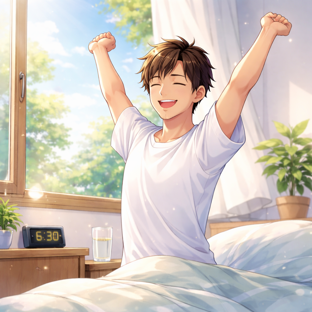 今朝はなんと、目覚ましが鳴る前に自然と目が覚めました。