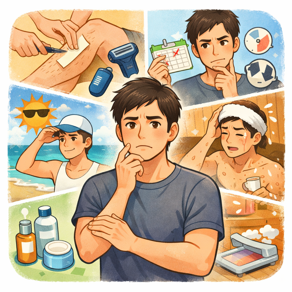 対策:当日はぬるめのシャワー中心に。運動やサウナは控え、肌を落ち着かせるのを優先しましょう。