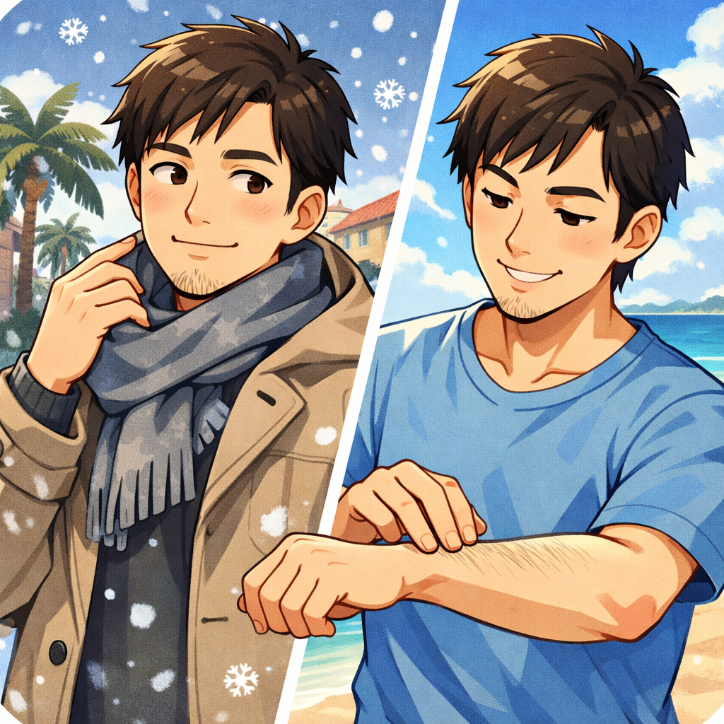 また、首元やヒゲは一年中見える場所なので、冬でも「整っているかどうか」が出やすいポイントです。脱毛しておくと、ムダ毛を気にして服装を選ぶ必要が減り、ニットやシャツもスッキリ着こなせるようになります。