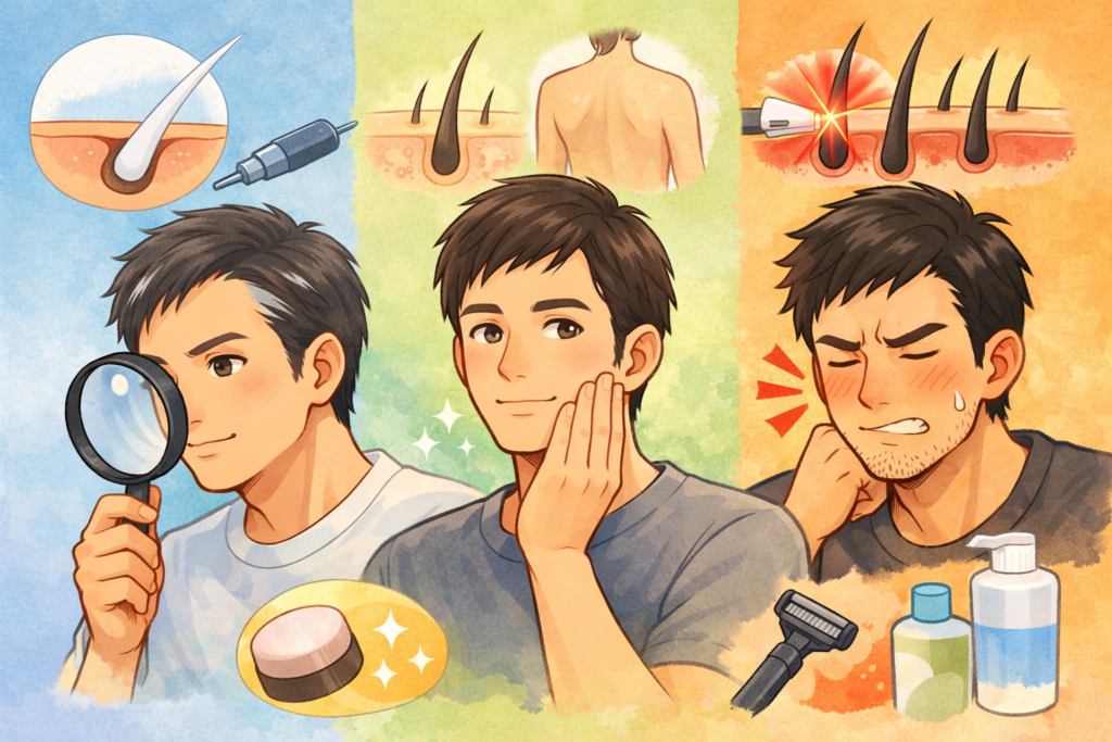 - 濃い毛:効果が出やすい分、肌ケアを重視